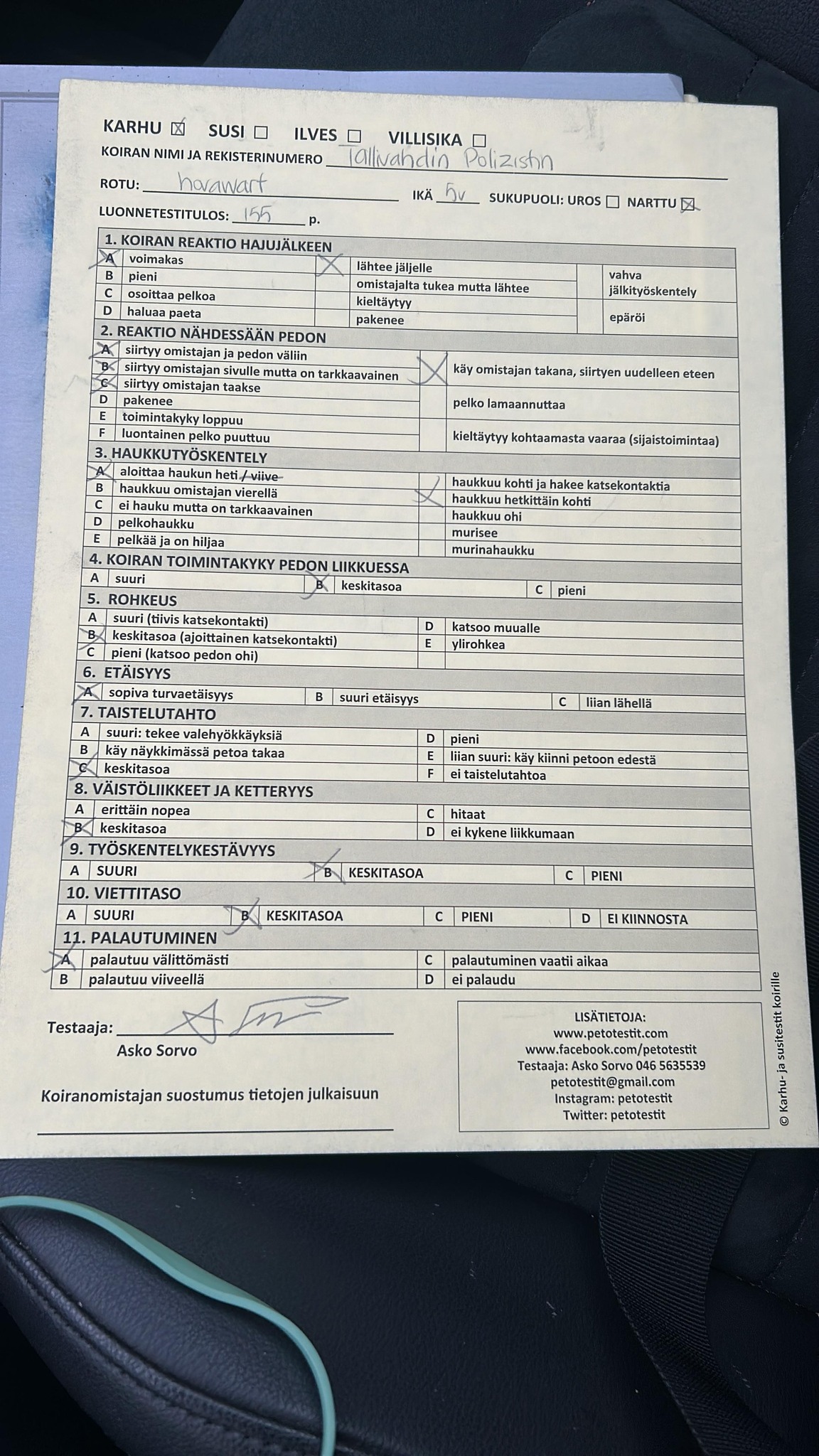 | 02.08.2025 PETOTESTIUUTINEN: Hera 5 v, Tallivahdin Polizistin, oli emäntänsä Jenni Väänäsen kanssa petotestissä ja Herahan koki saavansa ihan mahtielämyksen - ONNEA! |