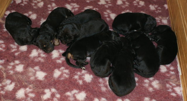 Tallivahtien värimaailmakin laajeni, sillä 10.4.2011 saimme kerralla peräti 8 mustaa hoffia. FH2 BH Tallivahdin Engleinin eli Mangon ja sauerlandilaisen IP3 VPG3 BH Delano von Andwarin eli Jamesin hedelmällisen rakkauden tuloksena syntyi 3 mustaa urosta, 5 mustaa narttua ja 2 merkkiväristä narttua. Pentueen tavoite oli hakea jälleen suoritustehoa Sauerlandista käyttökokeisiin ja näyttöjä siitä saadaan toivottavasti jo kolmivuotiskoekaudella. Kauneus näytti periytyvän odotetusti Mango-emän puolelta :-)
