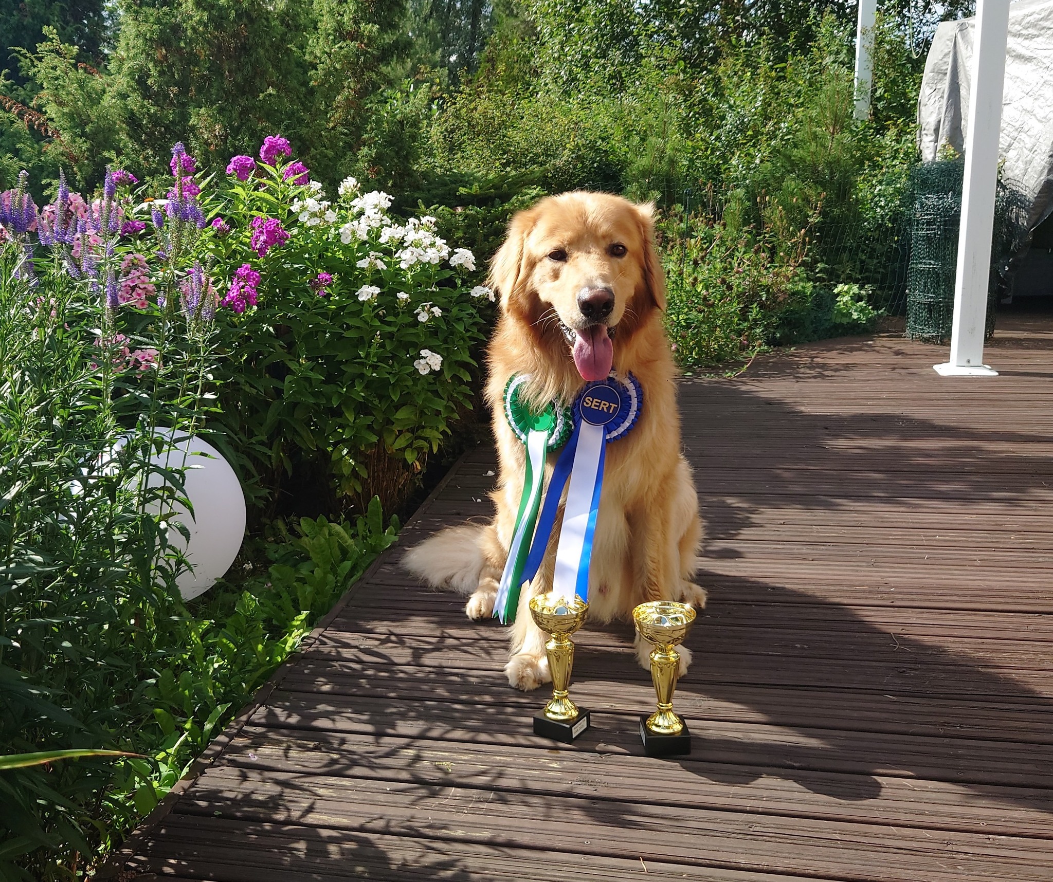 Urin kanssa aloitimme yhteisen koeuramme syksyllä 2024, jolloin suoritimme FCI-BH-kokeen. Urin 2-vuotiskaudella suoritimme FCI-IFH1 kokeen toukokuussa, kesäkuussa Uri oli Saksassa rotumme ZTP:ssä ja sai hyväksytyn jalostustarkastuksen hyvillä pisteillä. Syyskuussa saimma rotumme pk-mestiksissä hyvän JK1 koulutustunnuksen A-tottelevaisuudella. Näin Urista tuli jo 2-v