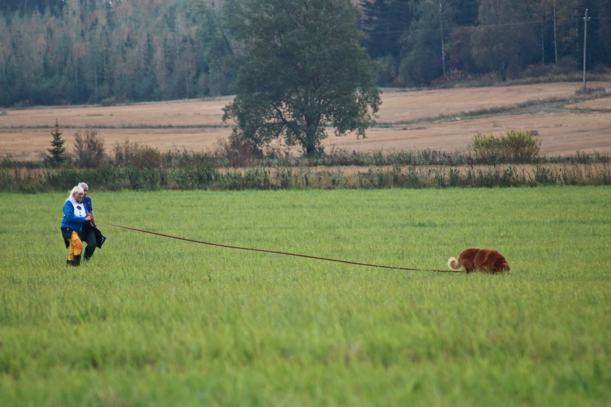 MIRO ON ROTUMME FCI-IGP-FH MAAILMANMESTARI!!! Olipas aikamoinen seikkailu rotumme erikoisjäljen MM-kokeessa 10.-13.9.25, joka järjestettiin ensimmäistä kertaa Suomessa. Kokeeseen osallistui 12 hovawartia 6 eri maasta: 1 ruotsalainen, 2 saksalaista, 2 slovakialaista, 2 tsekkiläistä, 2 unkarilaista ja 3 suomalaista. Tunnelma oli käsinkosketeltavan jännittävä jo keskiviikkoiltana Hotelli Hanhen pihalla Lapinjärvellä, kun ensin ilmoittauduttiin, tarkistettiin rokotukset ja koirat ja lopuksi vielä mitattiin, että liinat ovat minimissään 10 metrin mittaisia. Sen jälkeen oli avajaiset Hotellin ravintolassa. Avajaisissa osallistujat arvottiin kahteen kilpailuryhmään punaiset ja keltaiset ja näissä ryhmissä sitten suorittaisimme jäljet. Meikäläinen oli keltaisessa ryhmässä, joka ensimmäisenä kisapäivänä suoritti iltapäivällä. Jäljet arvottiin sitten vasta lähempänä suorituksia ja niinhän siinä sitten kävi, että saimme Miron kanssa koko päivän viimeisen jäljen, joten suorituksemme alkoi klo 17.00. Miro oli lähdössä normaali ensimmäiset viisi metriä, mutta sitten se yhtäkkiä teki ison ympyrän ja mulkoili meikäläistä siinä kävellessään ja emännän veri kyllä seisahtui. Onneksi Miro päätti sitten itsenäisesti jatkaa suoritusta ja jäljesti koko loppujäljen varsin normaalisti. Tuuli oli kova ja ruoho kohtalaisen pitkää, jolloin koiran piti osata pitää kuono koko ajan maan pinnan lähellä ruohon seassa, jotta se ei olisi kadottanut jälkeä. Harmittavasti Miro jätti peltoon kaksi esinettä, eikä merkannut niitä lainkaan. Ne olivat saman suoran jälkimmäisiä esineitä, eli suorien ensimmäiset esineet se ilmaisi normaalisti, mutta ei tosiaan noteerannut suorien toisia esineitä. Pitääpä jatkossa laittaa useampia esineitä samalle suoralle, jotta Miro lopettaa niiden laskemisen... Tuomari Outi Hermiö kehui Miron vastatuulityöskentelyä päivän parhaaksi ja olin todella iloinen Miron työskentelystä. Ensimmäisen koesuorituksemme pisteet olivat 82 ja olimme niillä sijalla kolme. Kisapäivien välillä oli yksi vapaapäivä, jolloin seikkailimme kultapoikien kanssa mm. luontopolulla. Toisen päivän koejäljet olivat samoilla pelloilla kuin ensimmäisenä päivänä, mutta jälkiryhmät vaihtoivat peltoja ja aikatauluja päittäin, eli meidän jälkivuoromme alkoi aamulla ja Miro sai jäljen nro 3, jonka aloitusaika oli klo 11.00. Toisena päivänä tuomarina oli virolainen Aivo Oblikas. Nyt Miron alku ja ensimmäinen suora oli varsin normaali, mutta kolmessa ensimmäisessä kulmassa se teki tarkistuspyörähdyksen ja niinpä meikäläinen sai taas vähän ekstrajännitettävää. Jälkemme ensimmäinen puolikas sujui heikommin kuin jälkimmäinen puolikas, jossa Miro työskenteli varmasti ja halukkaasti. Nyt se ilmaisi kaikki 7 esinettäkin, joista saimme pisteitä erittäin hyvästä erinomaiseen: kannatti selvästi vaihtaa ilmaisu talvella makaamisesta seisomiseen, sillä nyt ilmaisuista tuli vain muutama pistemenetys. Miro sai loppupisteet 87 ja me nousimme kisan kärkeen. Siinä sitten ehdin jännittää vielä 9 koiran suoritukset, ennen kuin koe päättyi. Tsekkiläinen koirakko sai samat pisteet kuin me 169 p/200, mutta Miron yhden jäljen pisteet olivat paremmat ja näin meistä tuli rotumme erikoisjäljen maailmanmestareita! Kisatunnelma oli avoin, mukava ja rento alusta loppuun asti ja kokeen päättymisen iltajuhlaan osallistui noin 50 ihmistä. Miro on ihan mahtavan tulosvarma koira, joten osasin odottaa tulosta, sehän teki ensimmäisen IGP-FH-tuloksensa 165 p 4-vuotiaana vuonna 2021 rotumme MM-kokeessa Saksassa ja silloin olimme kokeen viidensiä. Tämä koe oli ilman muuta yksi harrastusurani huippuhetkistä, jota tulen varmasti muistelemaan pitkään! ISO KIITOS KAIKILLE MEITÄ KANNUSTANEILLE JA ONNITELLEILLE - WE ARE THE CHAMPIONS OF THE WORLD