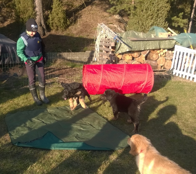So totaly we were 19 dogs in training, that is VEEERYY MUCH! Our schedules were quite excact just some failures... On the Saturday evening we were having a grill party with puppy circus in our home. H-puppies had a lot of fun in playing and so did we all! The weekend was JUST WONDERFUL AND EDUCATIONAL - THANK YOU ALL! Now it is very nice to wait for summer and FH tests to come!